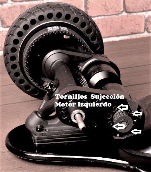 It would not be necessary to remove the wheels, although we have removed them here for a better visualization. When loosening the screws that hold the motors, we will see that the holes in these screws are oval, so that, once loosened, we can move the screw to the sides. Once we have all the screws loosened, we will see that the motors can move forward or backward within the oval holes that I mentioned before, we will move the motor in such a way that the belt has the required tension.